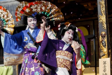 演目は曳山の正面にある四畳半の舞台と子ども役者用にアレンジされます。また、毎年新しい演目が演じられ、長浜独自の外題(題名)がつけられます。毎年入れ替わりで4基の曳山が出番山として登場し、それぞれの曳山で外題が演じられます。